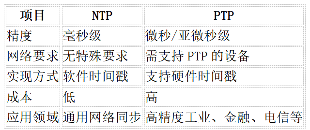 总之,NTP和PTP都是重要的时间同步技术,但面向的应用场景和精度需求完全不同,选择哪种协议应根据具体系统的同步精度需求、网络环境以及设备支持情况来决定,对于大多数IT系统来说,NTP已经足够;但在对时间敏感性极高的领域,PTP则是不可或缺的同步方案。