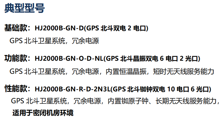 | 概述 HJ2000B系列NTP网络时间服务器支持标准NTP(含v1/2/3/4)和SNTP网络协议,可为计算机应用系统、流程控制管理系统、电子商务系统、网上B2B系统以及数据库集群等系统需要提供精密网络授时服务和时间戳服务,广泛应用于企事业单位、金融、移动通信、医疗、石油、电力、交通、工业以及特殊行业等各个领域。 HJ2000B系列NTP网络时间服务器采用安全的MD5协议和证书加密方式,支持参考源冗余、网口灾备、双机热备等功能,确保系统服务可靠;设备具有完整的日志记录,便捷的WEB管理界面,同时设备支持SNMP网络管理协议,并提供独立的NTSM监控软件来监测客户端时间偏差。 HJ2000B创新性的采用了基于PCI-E总线全??榛逑渖杓疲贚inux的全系统集中监控以及泰福特具有完全自主知识产权的时间驯服和守时技术,可实现GPS、北斗等多参考源输入和多类型时频信号输出的按需灵活配置,可实现系统板卡级实时故障诊断与处置,以及SNMP、UDP、CONSOLE等多种协议管理控制接口,可广泛应用于企事业单位、金融、移动通信、医疗、石油、电力、交通、工业以及特殊行业等领域。 HJ2000B可以配置5个PCI-E 插槽,每个插槽支持4路千兆电口或者2路万兆光口,方便扩展,可支持22路电口或10路光口,或电口光口的混合配置。网络接口默认支持NTP协议,可通过软件配置支持IEEE1588v2(PTP)协议。